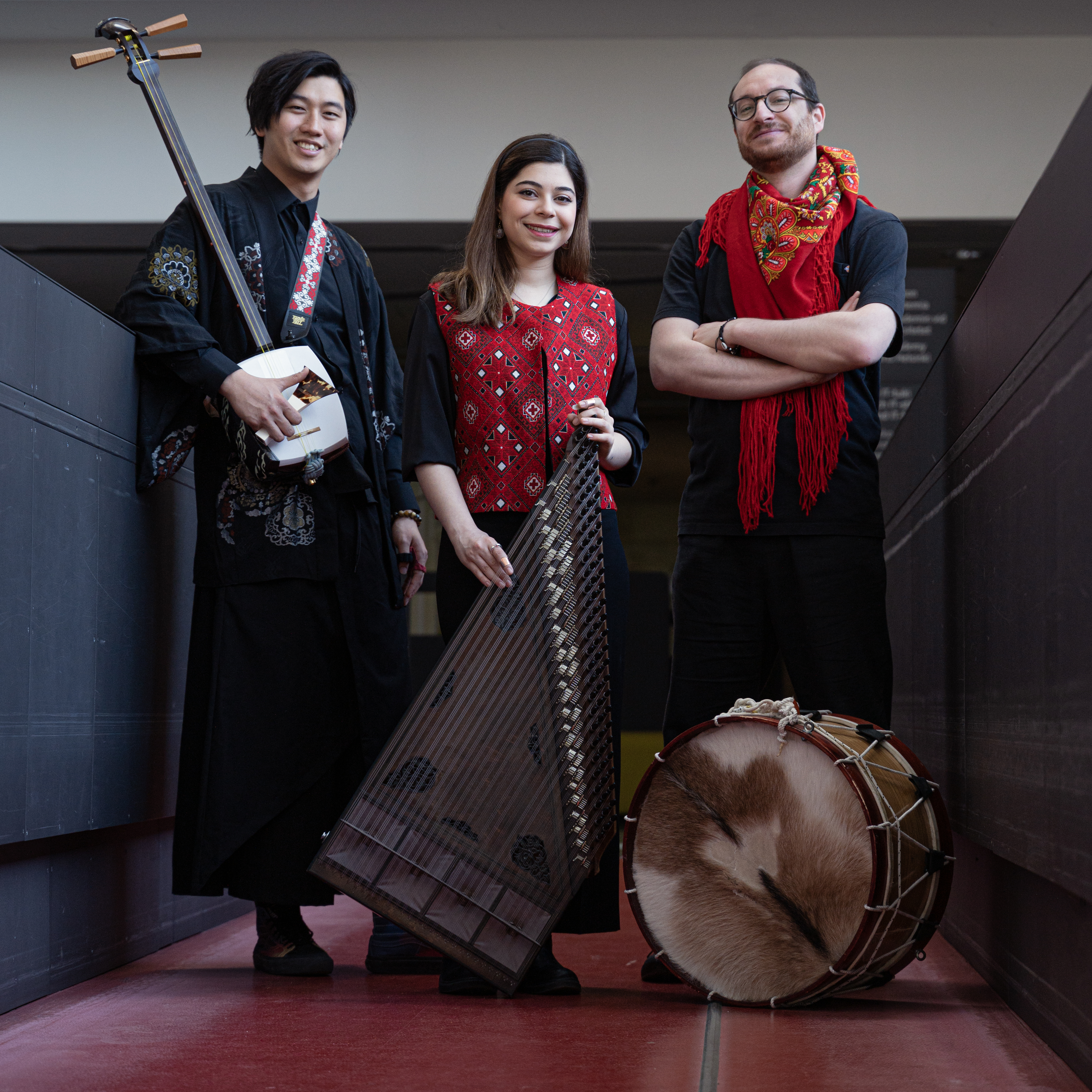 KAôS is a collective of artists from Taiwan, Iran, and Portugal that blends traditional and contemporary folk music from around the world. Ni Jui Hsin (Ray) brings the vibrant Japanese sound of the Tsugaru shamisen, Sara Majidi Nejad shares Persian influences through the Qanun, and João Luís contributes eclectic percussion inspired by community-focused collaboration. Together, they reinterpret ancient melodies through innovative arrangements, storytelling, and multilingual expression.