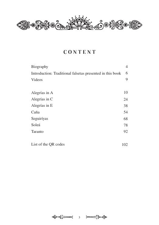 Tästä kirjasta löydät kaikki tarvittavat melodiat flamencotanssin ja -laulun säestykseen. Flamencomusiikki koostuu monista eri elementeistä, joista yksi keskeisimmistä ovat perinteiset kitaramelodiat. Nämä melodiat kuuluvat tiettyihin tyyleihin, pääasiassa alegrías, taranto, soleá, caña ja seguiríyas. Jos haluat tulla päteväksi flamencokitaristiksi, näiden melodioiden tulisi ehdottomasti olla ohjelmistossasi. Tästä kirjasta löydät tärkeimmät melodiat variaatioineen, ja se antaa sinulle taidot kehittää ja sovittaa näitä melodioita omaan tyyliisi.